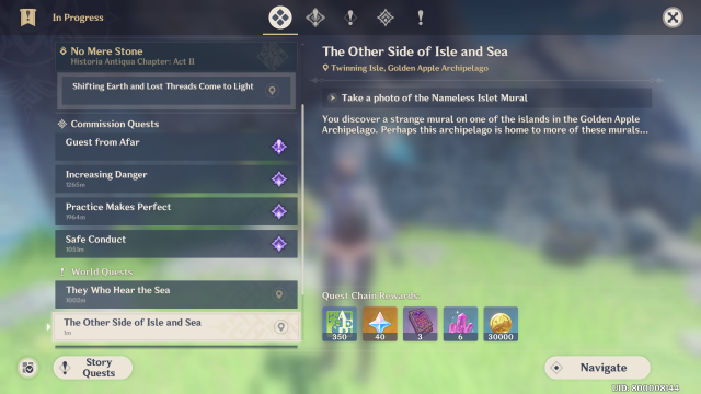 At the start of the quest, players have to take a photo of the Nameless islet Mural. Once you take the photo, you are asked to look for other murals.