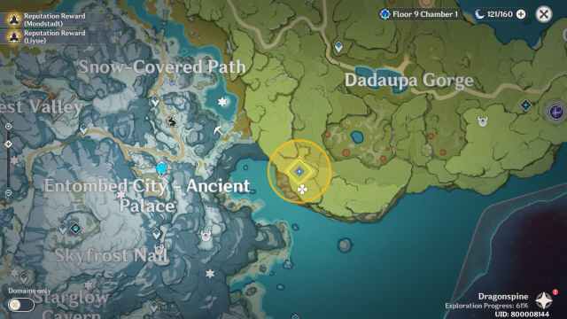 Now, it’s time to talk to the second Hilichurl to get clues on Unusual Hilichurl’s location. The second Hilichurl is located on the mountain shrouding Dadaupa Gorge. The best way to reach the location is by teleporting to Dragonspine Statue of Seven and then gliding your way to the marked location.