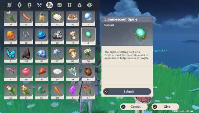 Give the Hilichurl Luminescent Spine that is extracted from Fireflies to progress the event quest.