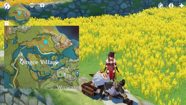 Unusual Hilichurl location 3 – In the Qingce Village Flower Fields.