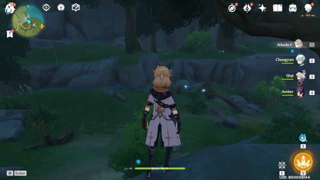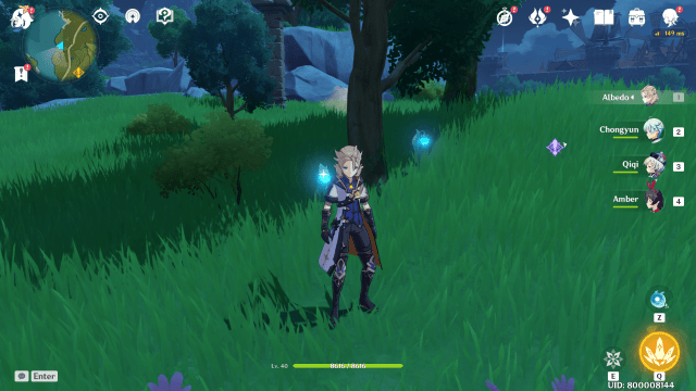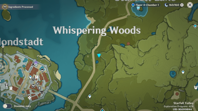 Travel to the above player icon location, near the start of Whispering Woods. Next, open Paimon’s menu and change to night time.