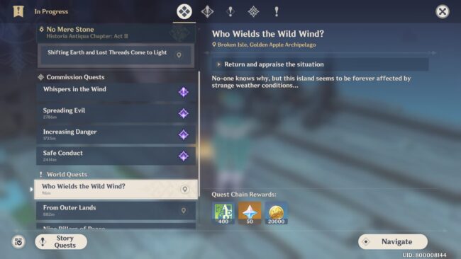 At the start of Who Wields the Wild Wind world quest, players are asked to return and appraise the situation. But, you don’t have to follow that.