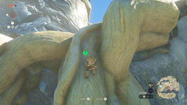 The other option is how the game wants you to reach the Snow Shrine. And that is by heading to the southmost part of the island and then taking the eastern path through the Pit Cave, where you learn how you use food items to stay warm, and then the Bottomless Cave.