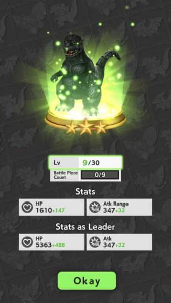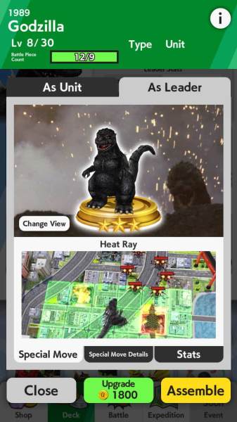 Although, there are some requirements to upgrade the battle pieces in Godzilla Battle Line. You need to not only pay G-Coins (easy-to-obtain currency) but also need to have enough of the same unit’s battle pieces to upgrade it. So as we saw in the above image, in order to upgrade Godzilla from level 8 to level 9, it required 1800 coins and 9 Godzilla battle pieces.