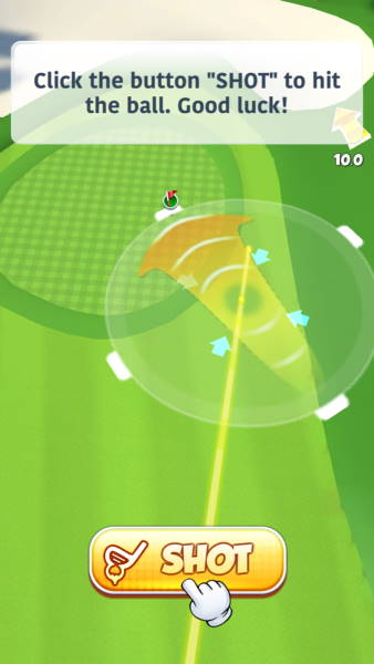 Alternatively, you can also pull back the golf ball even further past the blue circle. This will apply more power to the ball making it travel farther, but this also increases the speed of the pointer for the next step, making it harder to time a good shot. This high-risk, high-reward maneuver should only be attempted if you’re comfortable enough with the timing!