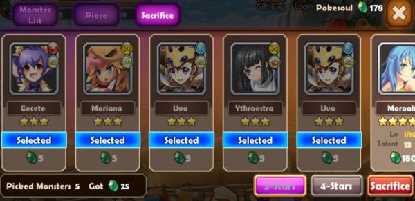 I know that the lady heroes in this game are so charming that you don’t really want to give them away, but if you want to get better in the long run, you unfortunately have to. This means that you have to sacrifice some heroes in order to get Pokesouls, which in return can be exchanged for hero pieces or other goodies.