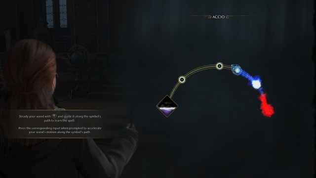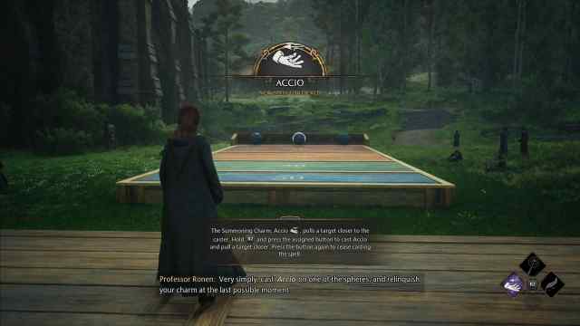 Once you arrive at the Charms Classroom, start the quest to trigger a cutscene where you interact with Natsai Onai while Professor Ronen talks about Charmwork. After some time, you must use directional and other keys to “learn the Accio spell.”