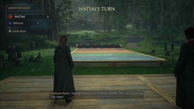 In the final test, Professor Ronen will add moving boxes in the field and, once again, as you pull the balls toward score marks on the ground. Do that, then the class will go back to the Charms Classroom, where you interact with Natsai Onai about your performance in Professor Ronen’s tests.