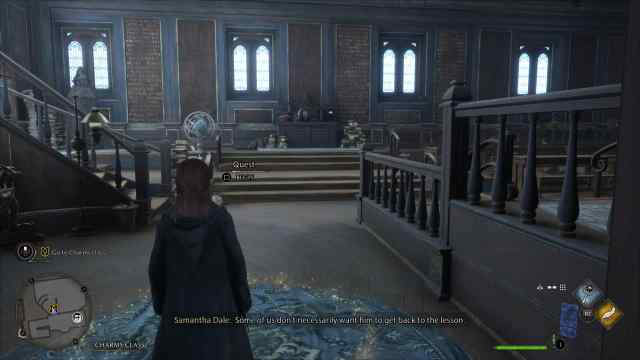 To start with the quest, make your way to the Charms Classroom, located in the Astronomy Wing. If you have unlocked the Charms Classroom Floo Flame teleport waypoint, you can use it to reach the Classroom quickly. But if you haven’t, you can simply use the stairs in the Astronomy Wing to reach the said location.