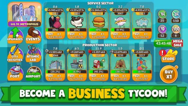 You should always start with upgrading the most expensive business you have unlocked and then work your way backwards to the Farms. This way, your profit will always be maximized – and the same will happen with your resource production, which is an important element as you unlock other gameplay elements.