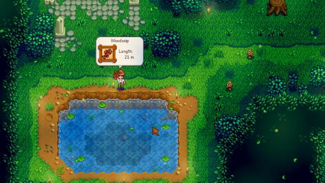 The Woodskip can only be caught in two places, but the most common place is the Secret Woods’ pond. If you haven’t been to the Secret Woods yet, head south from your farm to Marnie’s Ranch, then go straight west.