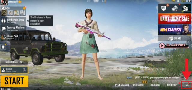 1. On the main screen of PUBG Mobile, click on the navigation arrow at the bottom right corner.