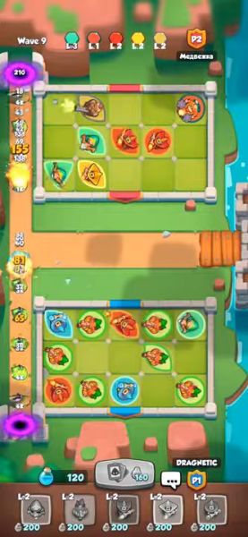 In Rush Royale, at the beginning of every match, players have a 3×5 grid to place their units and start the match. To compensate for this apparent lack of space, you can merge two identical units by dragging one unit onto the other, creating a new, but random unit with an improved fire rate.
