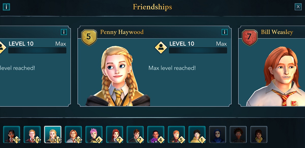 In Harry Potter: Hogwarts Mystery, as the story progresses, players will come across a number of different characters they can befriend. There are different ways by which players can interact with these characters daily and the progress is tracked by a Friendship Level meter for every interactable character.