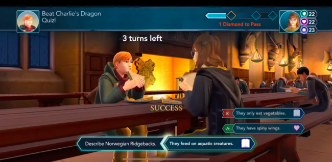 All aboard the Hogwarts Express! Harry Potter: Hogwarts Mystery brings all the magic of your favourite wizarding world to your mobile device. Pick your gender, your name, and edit the way you look, then it is time to start your new school year. You will choose your Hogwarts house, and choose your wand at Ollivander’s- just like in the books and movie! As you progress through the game you get to learn new spells, create potions, play Quidditch, and take quizzes with various characters to prove how knowledgable you are. We have all the correct answers to one of these quizzes below- Charlie’s Dragon Quiz!