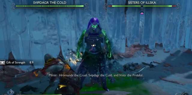 Even though there are three enemies, on the screen you will see two health bars. One belongs to Svipdagr The Cold, and the other belongs to the Sisters of Illska since the twins share it. And the best tactic to win is to take out the bosses one by one.