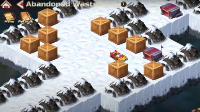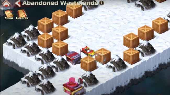 Go down one field, return to the crate, then go down again to the other crate and circle back counterclockwise past a challenge stop (we can’t access that one yet)—the goal is to approach the lower crate from the right, so you can push it forward; - Follow the crate across the ice and circle using the rocks and snow patches to approach the crate from below and send it moving up this time—now you can access another challenge to your left (1,282k);