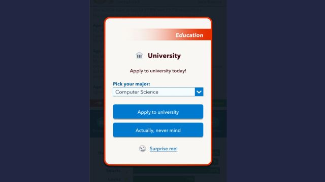 If you’re looking to create the next big mobile app, whether it’s a game, social media app, or whatever you can think of, you can do that in BitLife. You’ll need to study up though, because coding takes some practice. If you’re trying to complete the Lady Luck challenge, you’ll need to become a famous app developer in addition to doing things like being a female and living in Nevada.