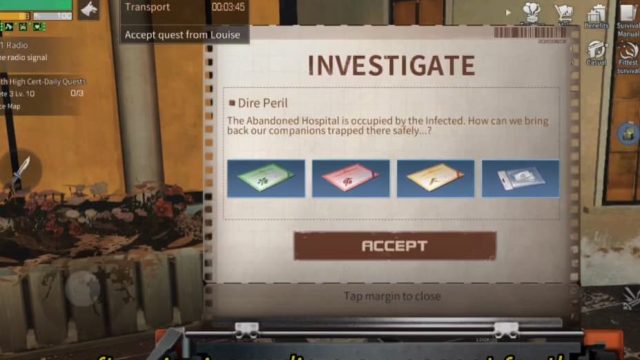 To take the quest, open the Fittest Survival menu. You will land at the Dire Peril quest page. Once there, click on “Track Quest” to start the Dire Peril quest. Now players have to go to Hope 101 and find a radio signal. You can do that by following the quest marker that leads to the radio signal.