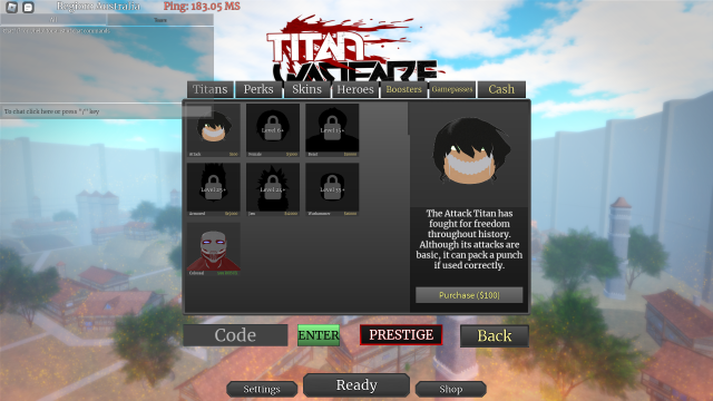 Doing so will allow you to enter the game as a Titan Shifter. Now, to actually transform into a Titan, you must wait till you get a Class. Once that happens, you can shift into a Titan. Just keep this in mind, each time you get a Class, the cost of shifting will keep increasing.