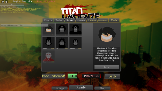 How to Get and Equip Titans in Roblox Titan Warfare