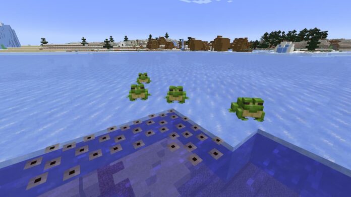 Like sea turtles, frogs also lay eggs in Minecraft. After entering love mode, one frog will search for nearby water blocks and lay eggs called frogspawn.