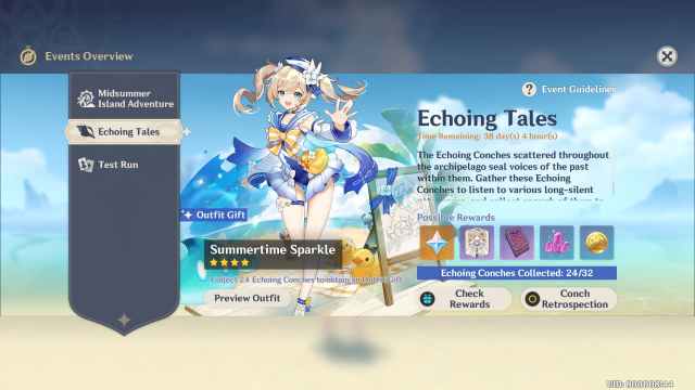 Once you have the 24 echoing conch shells, go to event’s tab and claim the Barbara’s Summertime Sparkle costume.