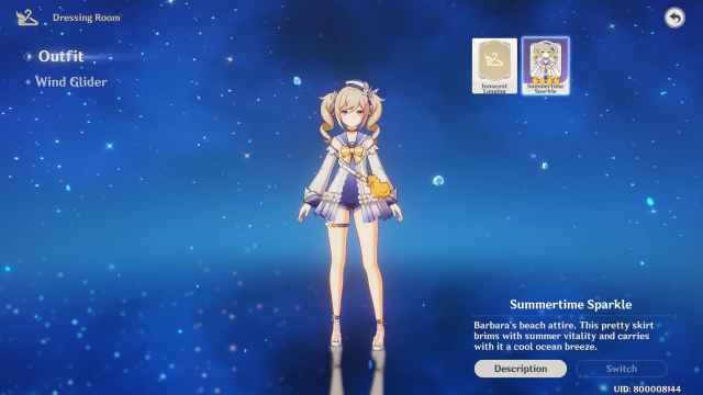 As mentioned earlier, at current, we have only two costumes in the game, namely Barbara’s Summertime Sparkle and Jean’s Sea Breeze costume.