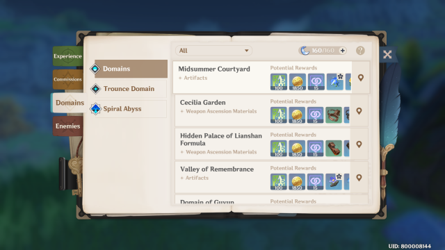 Some other domains includes – story domains, one time domains, and the spiral abyss.