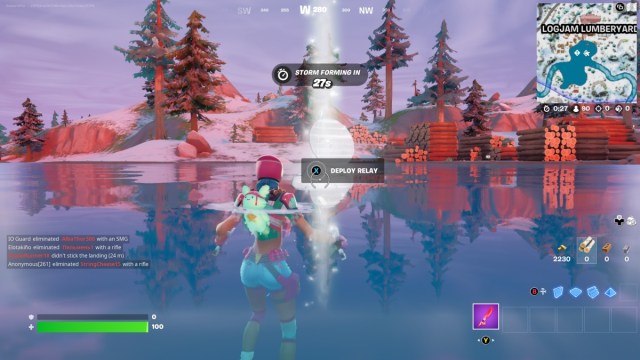 Next you must deploy 3 Aquatic Communication Relays near Logjam Lumberyard. Just approach each relay and interact with it. These are all positioned in the waters by Logjam Lumberyard and look like this: