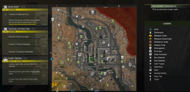 Moving on to the next objective, we recommend equipping any Lethal Equipment and a Munition Box during the Loadout menu before heading into DMZ. Once that is done, make your way to Sarwana Hotel alley in Al-Mazrah City and submit whatever Lethal Equipment you have on you.