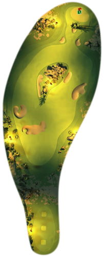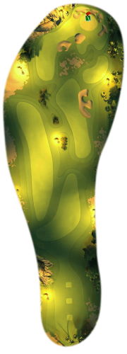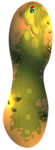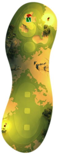 You’ve got par 5 for this course, so the key is taking your time and making sure your shots count. Go straight at the beginning, and if you’re near the middle top section, you can cut over the small sandpits, but watch out for the pits near the hole. Golf balls with high amounts of spin will do great here, as you can cut the curve in the middle.