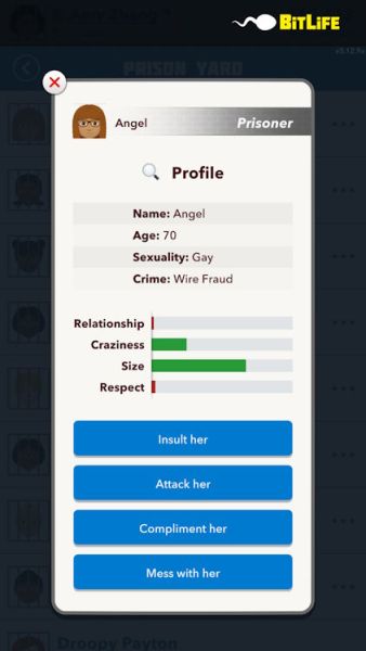 Once you’re in prison, select the Prison menu, then Prison Yard, and you’ll see a list of all the inmates. Pick any two of them and attack them, it doesn’t matter who. Just remember that each encounter may end in death, but thanks to your martial arts skills, you should have no problem winning.