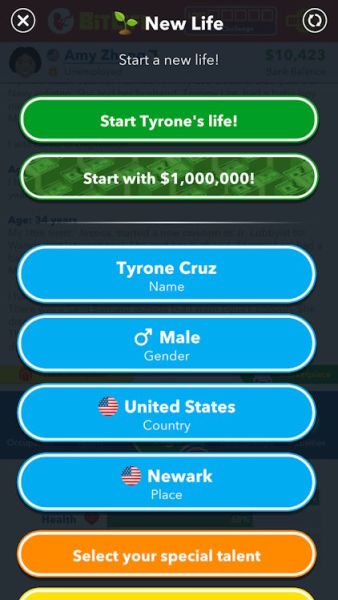 Whenever you’re ready to start your journey to getting ripped, start a new life in BitLife. Set your gender to Male, then set your country to United States. We have to be born in New Jersey for this challenge, and the largest city in New Jersey is Newark, so set your place to there.