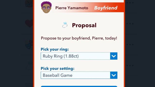 Once your lover’s relationship meter is full, go into Activities, then Shopping, then shop for jewelry. We’re going to need a nice ring to propose with, but it doesn’t need to break the bank.