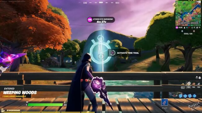 After reaching the marked location, head over to the northern end of the weeping woods near the wooden bridge. The option to activate the Time Trial challenge is present at the center of the bridge.