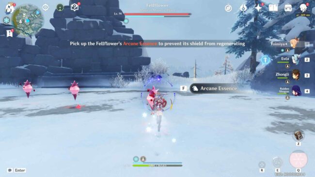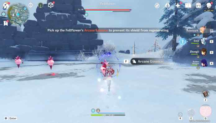 To defeat the Fellflower boss in Genshin Impact, players have to attack the Arcane Fruits and collect Arcane Essence until the Fellflower’s shield is gone.