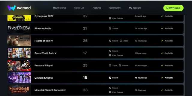 You can download the Gotham Knights trainer mod from WeMods official website. Once there, you can select the “See All Games” option on the main page and search for Gotham Knights or any other game.