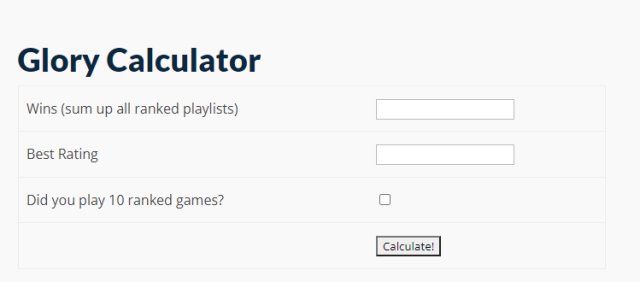 - Click on calculate and it will display the amount of Glory you will get at the end of the season.