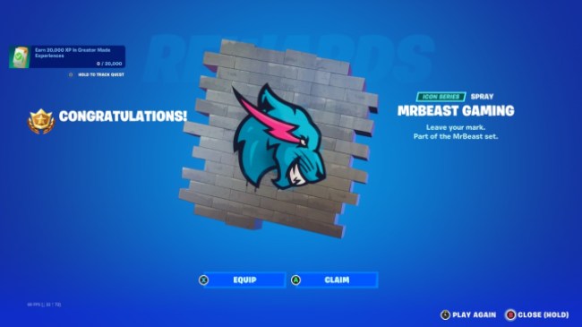If you collect enough Score and play enough rounds you can earn a MrBeast Gaming Spray, and the MrBeast Survival Games Loading Screen. These MrBeast Quests will be live until January 4th 2023.
