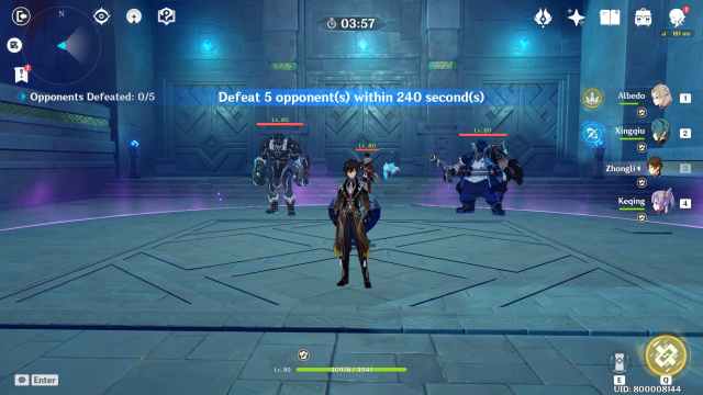 Using AoE damage dealers or someone like Venti to gather all the enemies at one place will get you an easy win. But, if you don’t have those characters, you can easily get past the first round using just your DPS character. [Electro DPS works fine]