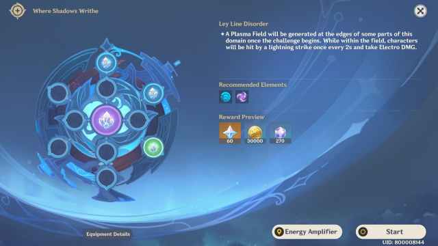 To begin with the Where Shadows Writhe Domain, first, you should select your team and energy amplifier configuration. However, the energy amplifier is not needed if you have a character who can generate shields and a good DPS electro or geo user.