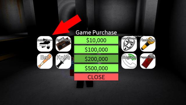 This will bring up the in-game store. You purchase a variety of gear in exchange for Robux, including weapons like the Bat and Knife, or fun items like the Boombox and Ringtone. What you want though is the Animation+ pack, which costs 100 Robux.