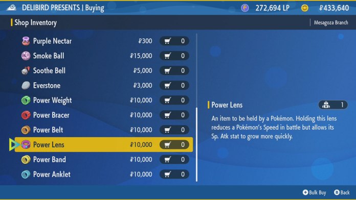 You can also give your Pokémon one of the Power Items. With them, the Pokémon will be able to gain a lot more Effort Points, but its speed will be halved. You can buy these Power Items from Delibird Parcels for 10,000 Pokedollars.