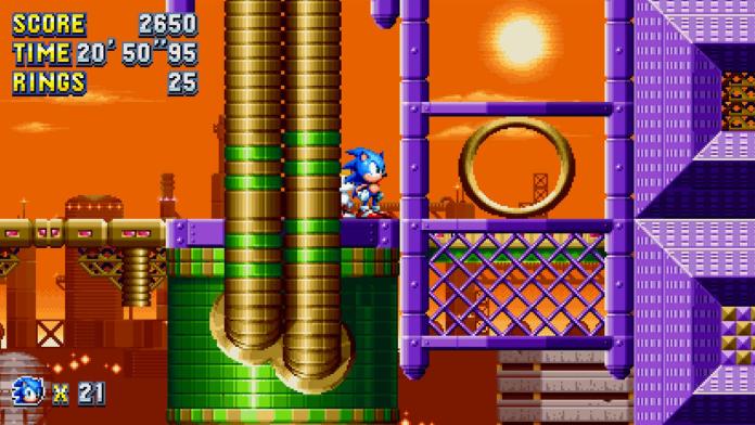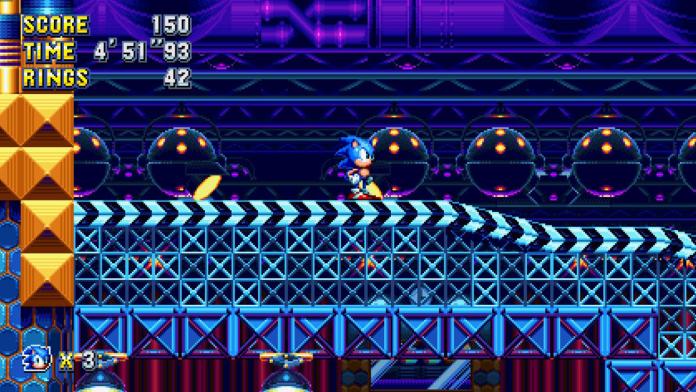 Finding a giant ring will warp you to a UFO bonus stage in Sonic Mania. There is at least one giant ring in every Act of the game, so you’ll have a good amount of tries to get all seven Chaos Emeralds.
