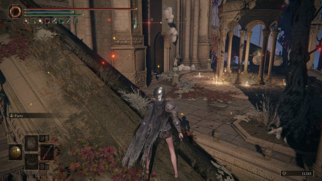 Defeat the two enemies and the giant rolling ball or run past them in the northeast corner of the room and take the stairs to reach the upper level. Once there, go right to the stone altar, and you will find the room with Mimic Tear ashes.