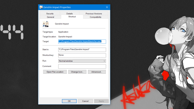 Right-click on the Genshin Impact launcher icon located on the desktop, then select properties, the very last option.