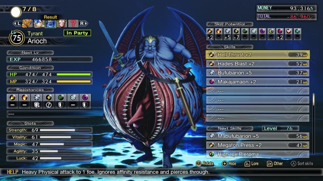 Being a high-level demon, Arioch is definitely a good demon to bring into battle, although his resistances aren’t particularly varied. He can repel Ice and resist Force and Dark, but he is weak to Electricity.