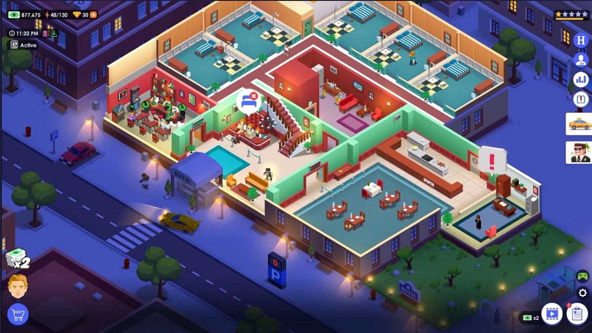 Players start in a small hotel and grow their businesses like opening an alpine hotel, a luxurious bed & breakfast, an exotic lodge, or an apartment complex. There are all kinds of accommodations available that can be furnished with every detail from the reception desk to the bedrooms and suites. Guests can be provided with single, double, triple, or even King rooms.