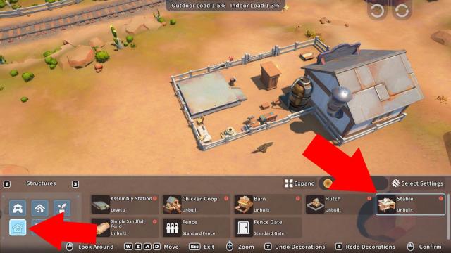 In the bottom left corner of build mode, select the icon that has a house with a heart in it to view structures. Structures are all the functional facilities for your home, and this includes the Stable, which unlocks the ability to own a permanent mount when built.